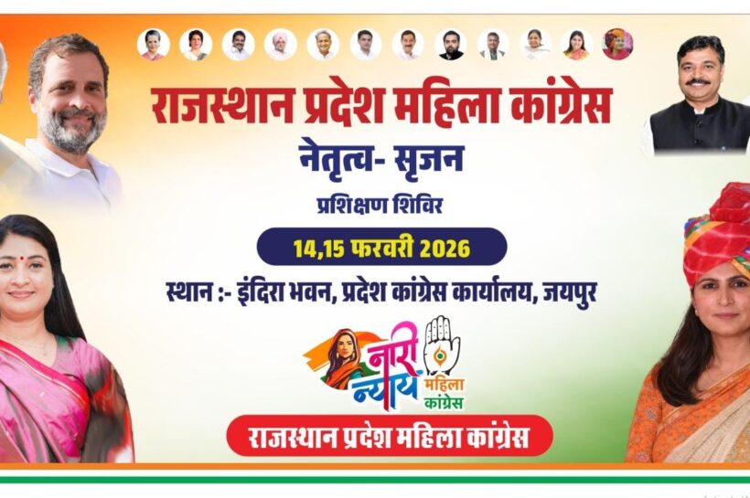 महिला नेतृत्व को नई धार देगा ‘नेतृत्व सृजन’ कैंप, 14-15 फ़रवरी को PCC जयपुर में होगा महिला कांग्रेस का दो दिवसीय आवासीय प्रशिक्षण