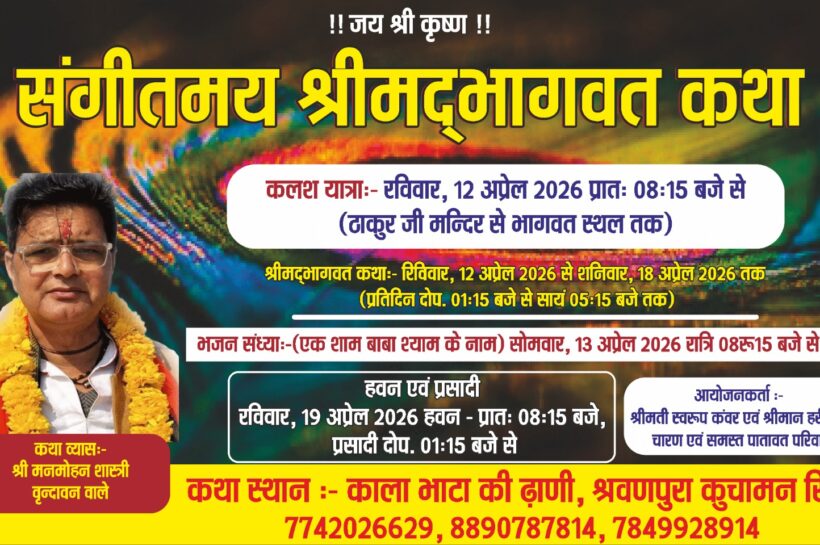 भक्ति रस से सराबोर होगा श्रवणपुरा — कल से शुरू होगा सप्त दिवसीय श्रीमद्भागवत कथा महोत्सव,निकलेगी भव्य कलश यात्रा