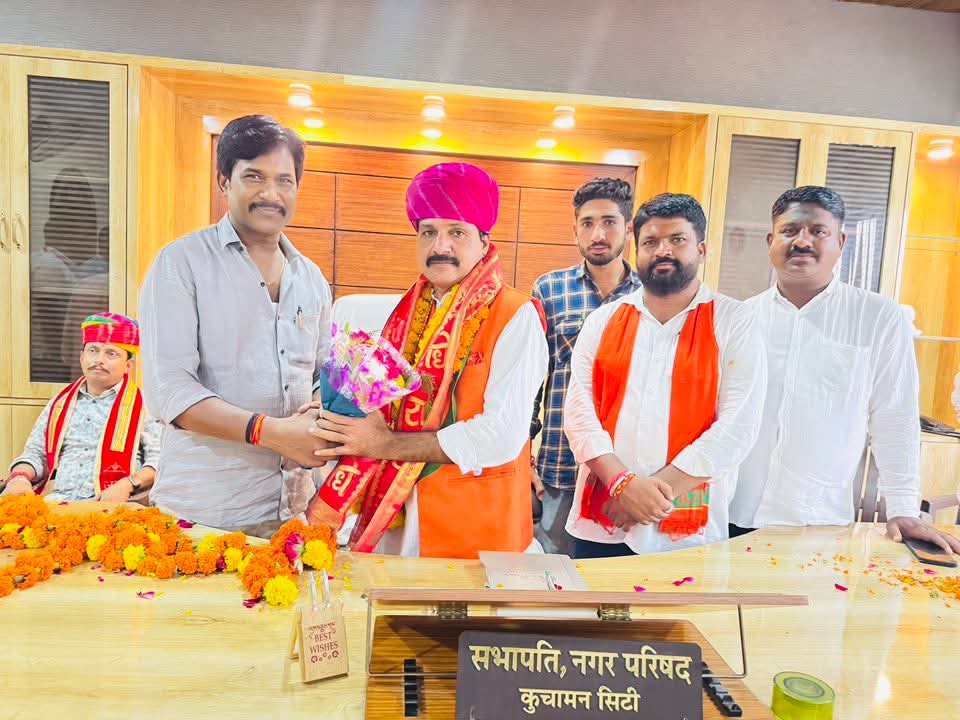 कुचामन सिटी नगर परिषद कुचामन में निलंबन से खाली हुई सभापति की कुर्सी को शुक्रवार को नया मुखिया मिल गया। वार्ड 32 के पार्षद सुरेश सिखवाल ने तय मुहूर्त में नगर परिषद भवन पहुँचकर सभापति का पदभार संभाला। आयुक्त देवीलाल ने उन्हें कार्यभार ग्रहण कराया, जिसके बाद परिषद परिसर शुभकामनाओं और बधाइयों से गूंज उठा।