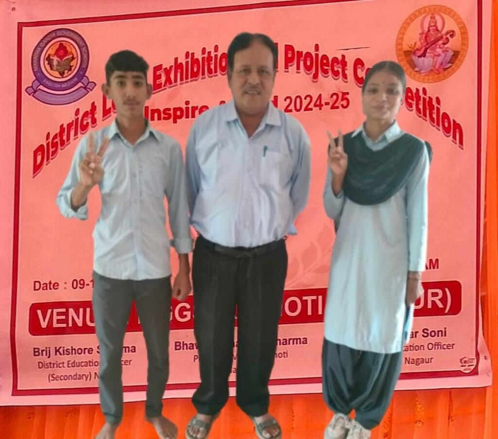 इसी क्रम में जायल के कठौती स्थित महात्मा गांधी अंग्रेजी माध्यम राजकीय विद्यालय में आयोजित इंस्पायर अवार्ड मानक प्रदर्शनी 2024-25 में विद्यालय के छात्र हंसमुख और खुशी परिहार ने उत्कृष्ट प्रदर्शन कर राज्य स्तर के लिए चयनित होकर विद्यालय की उपलब्धियों में एक और अध्याय जोड़ा।