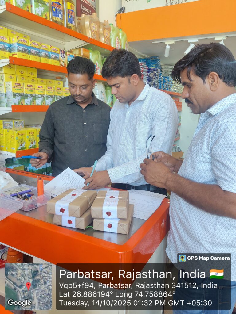 त्योहारी सीजन पर मिठास में जहर घोलने वालों पर अब शिकंजा कसना शुरू हो गया है। जिला कलक्टर डॉ. महेंद्र खड़गावत के निर्देशन में रसद विभाग, नाप-तौल विभाग, खाद्य सुरक्षा विभाग और उपखंड अधिकारी कुसुमलता चौहान की संयुक्त टीम ने मंगलवार को परबतसर बाजार में जबरदस्त कार्रवाई की।
