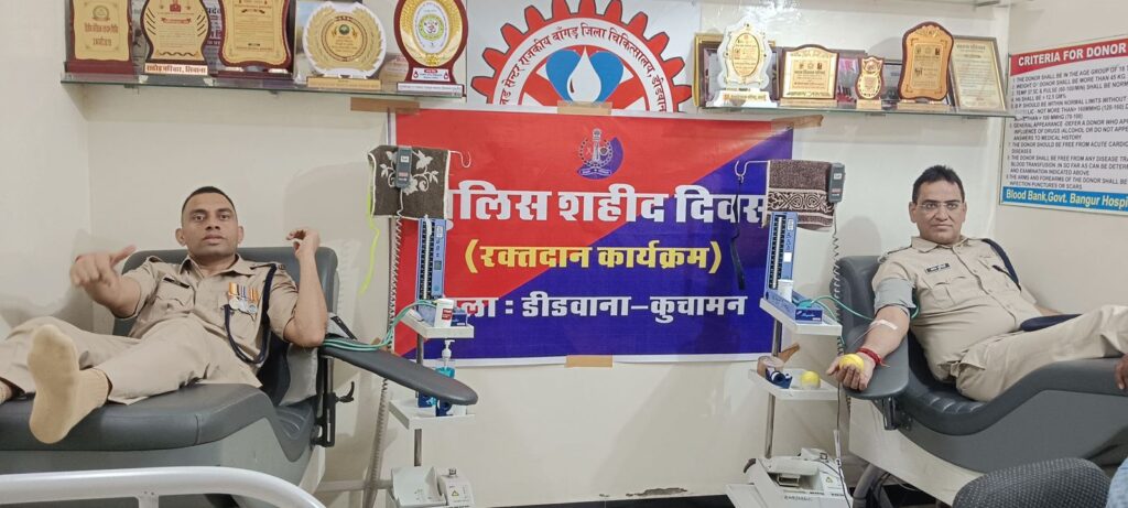 इस मौके पर राजकीय बांगड़ जिला हॉस्पिटल डीडवाना में रक्तदान शिविर भी आयोजित किया गया, जिसमें पुलिस अधिकारियों और जवानों ने बढ़-चढ़कर हिस्सा लिया। रक्तदान के जरिए पुलिसकर्मियों ने “सेवा परमो धर्मः” की भावना को साकार किया।