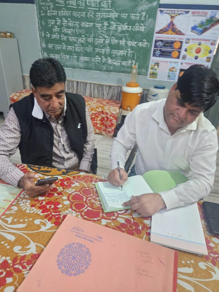 पूरे प्रदेश की तरह डीडवाना – कुचामन जिले में चल रहे विशेष गहन पुनरीक्षण SIR अभियान को प्रभावी बनाने के लिए जिला अल्पसंख्यक कल्याण अधिकारी गोपाल जीनगर सोमवार को जिले के दौरे पर रहे। उन्होंने जिला मुख्यालय डीडवाना स्थित विभिन्न मदरसों का औचक निरीक्षण कर शिक्षा अनुदेशकों व बच्चों से संवाद किया तथा सभी शिक्षा व कंप्यूटर अनुदेशकों को अपने तथा परिवार के सदस्यों के “एन्यूमरेशन फॉर्म” ऑनलाइन भरने के निर्देश दिए। निरीक्षण के दौरान ब्लॉक कॉर्डिनेटर मोहम्मद नईम भी साथ रहे।