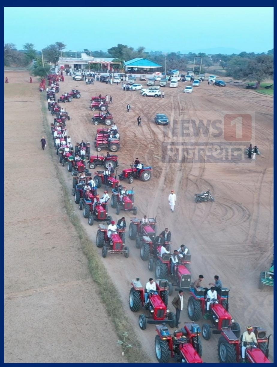 शादी–बारातों में आलीशान गाड़ियाँ, लग्ज़री कारों और हेलीकॉप्टर का शोर जितना बढ़ रहा है, राजस्थान के एक किसान परिवार ने उतनी ही सादगी और अपनी जड़ों से जुड़ी मिसाल पेश की। डीडवाना-कुचामन जिले के हिराणी निवासी किसान दयालराम डोडवाडिया ने अपने बेटे महेंद्र की बारात लंबे वाहन–काफिलों को पीछे छोड़ते हुए 101 ट्रैक्टरों पर निकाली। बारात जब सड़क पर उतरी, तो देखने वालों की भीड़ ऐसे उमड़ी मानो कोई अनोखा जुलूस निकल रहा हो।