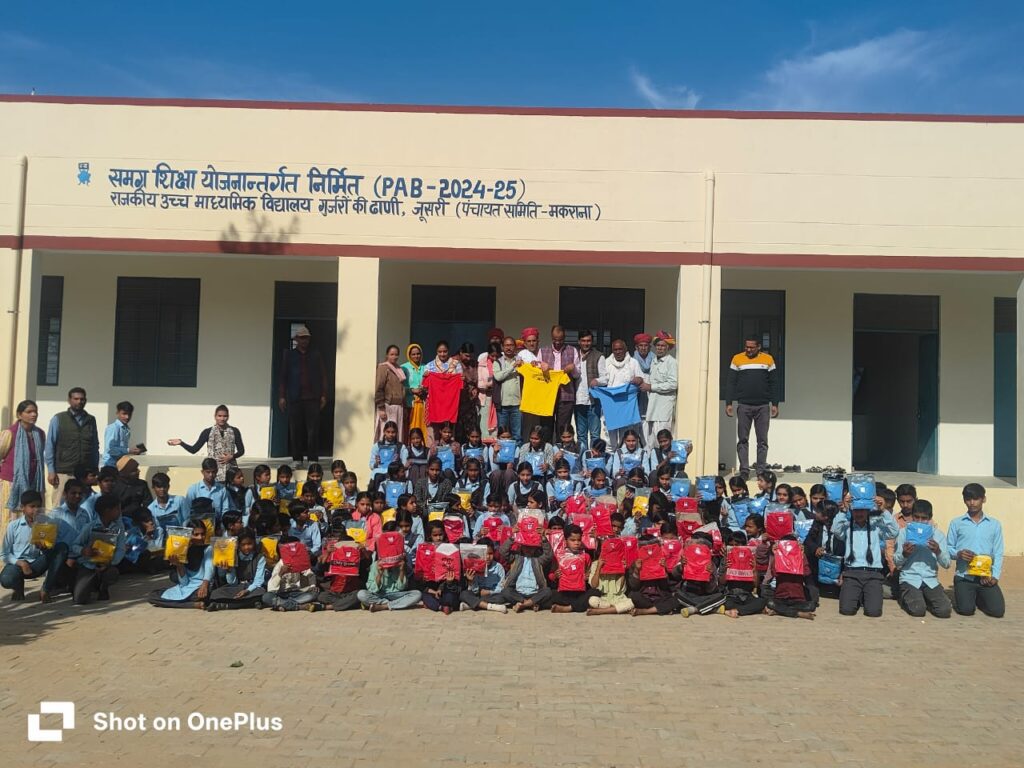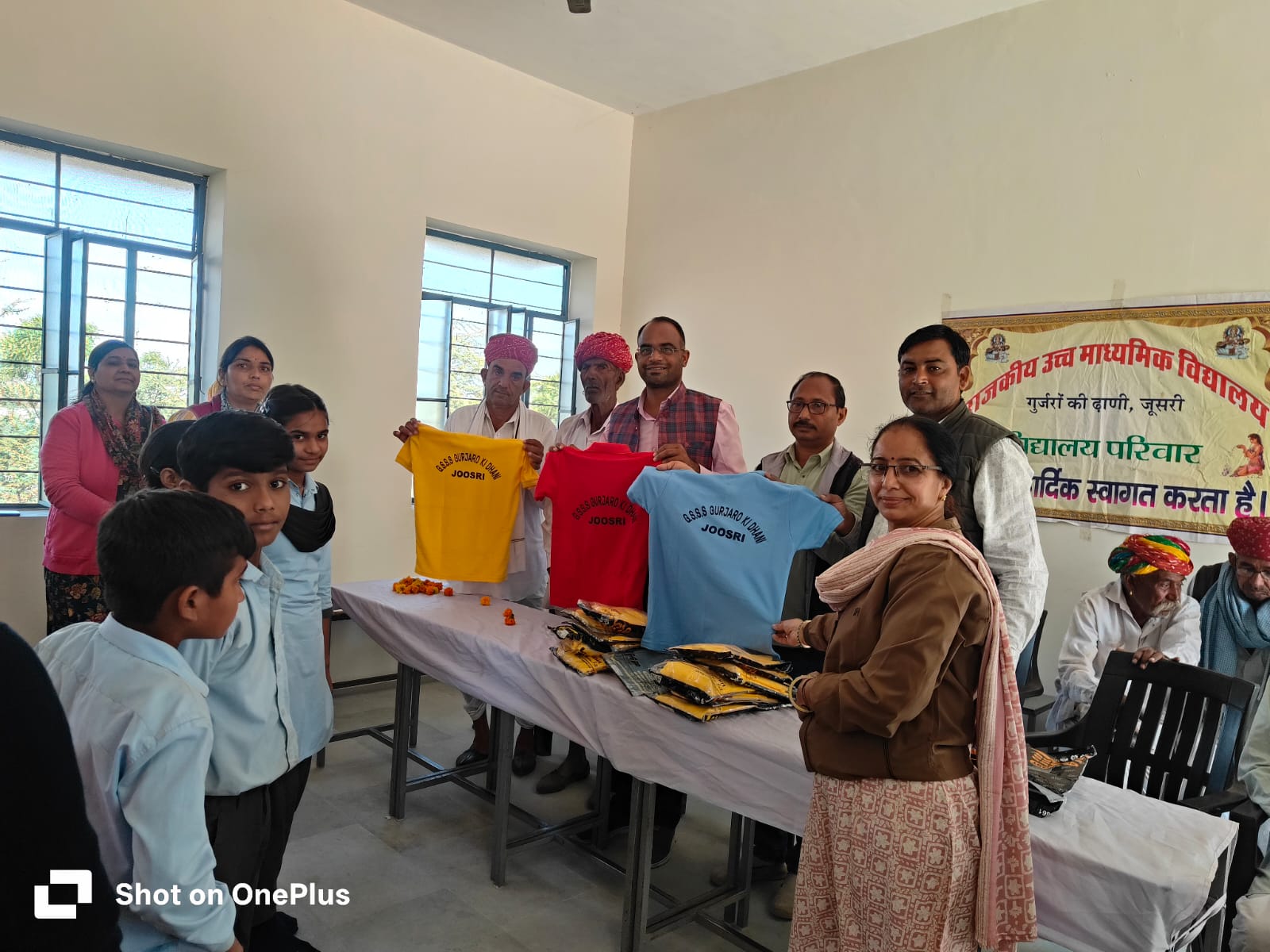 ग्राम जूसरी स्थित राजकीय उच्च माध्यमिक विद्यालय, गुर्जरों की ढाणी में शिक्षा के साथ-साथ सामाजिक सरोकारों की भी सुंदर मिसाल देखने को मिली, जब स्थानीय विद्यालय के समस्त स्टाफ ने भामाशाह की भूमिका निभाते हुए कक्षा 1 से 12 तक के सभी विद्यार्थियों को टी-शर्ट वितरित की। करीब 30 हजार रुपये की लागत से किए गए इस वितरण ने बच्चों के चेहरों पर मुस्कान बिखेर दी और विद्यालय परिसर उत्साह से भर उठा।