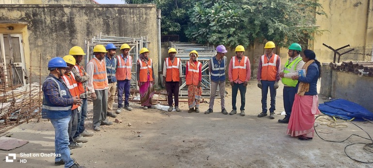 कार्यक्रम के दौरान श्रमिकों को कार्यस्थल पर सुरक्षा मानकों का पालन करने, व्यक्तिगत सुरक्षा उपकरणों का नियमित उपयोग करने तथा स्वच्छता को जीवन का अभिन्न हिस्सा बनाने के लिए प्रेरित किया गया। सामाजिक विकास विशेषज्ञ देवेन्द्र सिंह ने श्रमिकों को संबोधित करते हुए कहा कि जीवन अनमोल है और इसे सुरक्षित रखना प्रत्येक श्रमिक की प्राथमिक जिम्मेदारी है। उन्होंने श्रमिकों से अपील की कि वे कार्य करते समय हेलमेट, सेफ्टी बेल्ट, जूते और अन्य सुरक्षा उपकरणों का अनिवार्य रूप से उपयोग करें। इस अवसर पर सभी श्रमिकों को सुरक्षा की शपथ भी दिलाई गई, ताकि कार्यस्थल पर किसी भी प्रकार की दुर्घटना से बचाव सुनिश्चित किया जा सके।