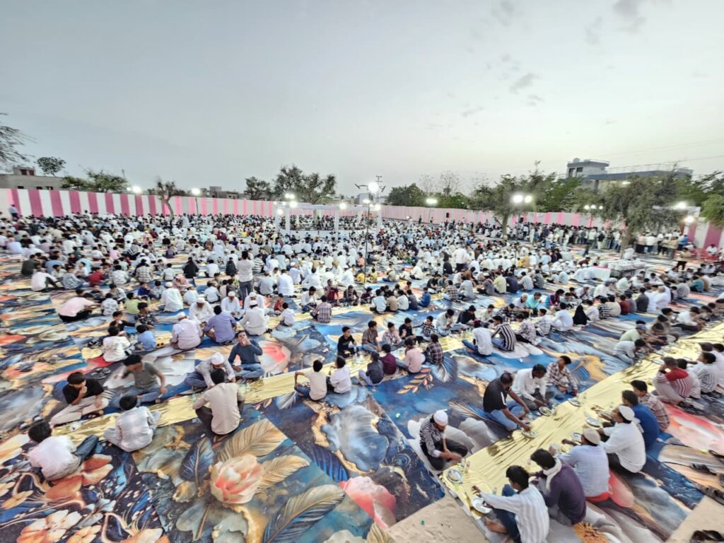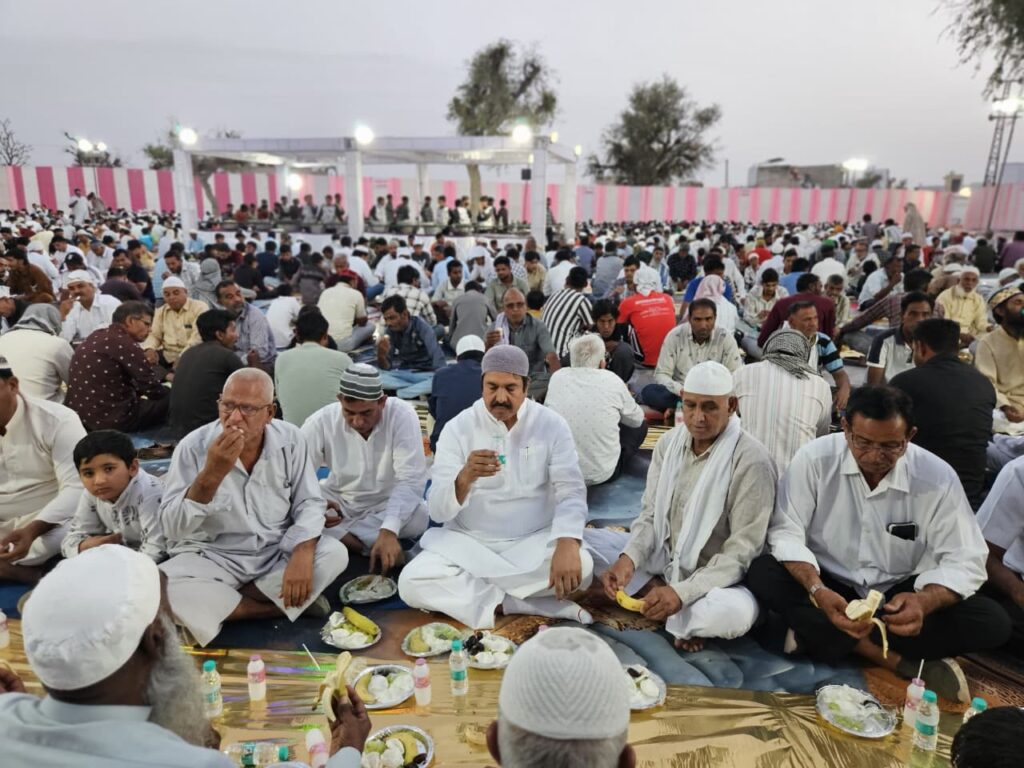 जन सेवा केंद्र परिसर में आयोजित कार्यक्रम के दूसरे चरण में शाम को रोज़ा इफ्तार का आयोजन किया गया। बड़ी संख्या में रोजेदारों सहित सभी समुदायों के लोग एक साथ बैठे और इफ्तार किया। इस दौरान हिन्दू समाज के लोगों ने भी बढ़-चढ़कर भाग लिया और रोजेदारों का रोज़ा खुलवाकर भाईचारे की मिसाल पेश की।
